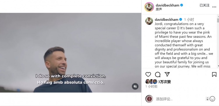 贝克汉姆问候阿尔巴:很荣幸有你为迈阿密遵守,咱们会念念念你