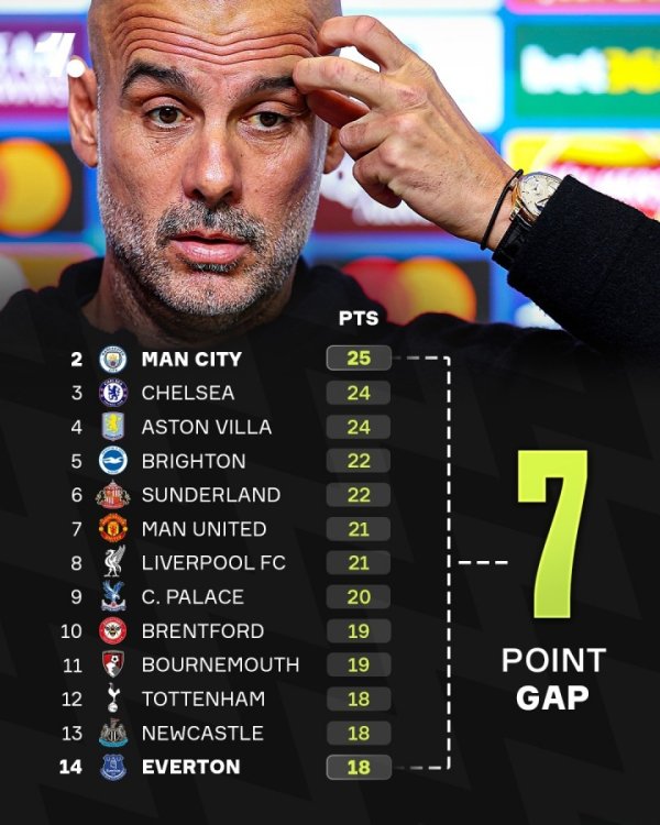 一场天国一处所狱😰赛季已过三分之一,英超第2与第14只差7分