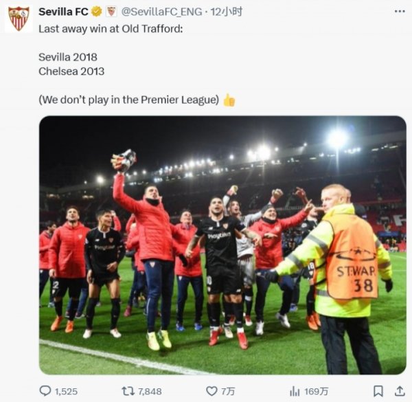 😂太搞了!塞维利亚官推辱弄切尔西,说起两队前次客胜曼联年份