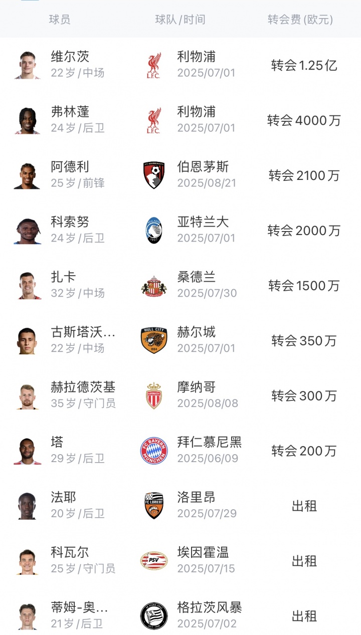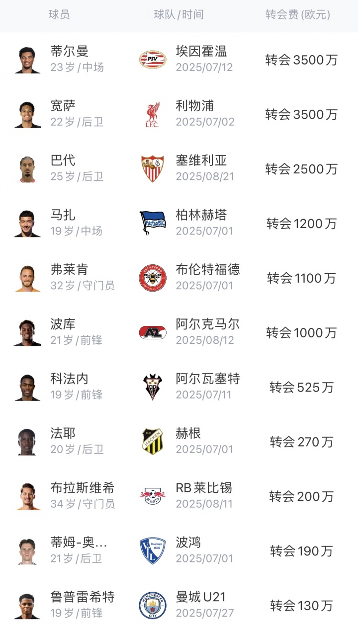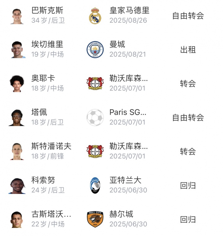 今夏,药厂已有17东说念主离队,其中有大王人上赛季的威望中枢球员,药厂凭借出售共赚得2.295亿欧;另有18东说念主加入球队威望,共花费1.41亿欧,新加入球队威望的18东说念主平均年纪仅22.2岁。