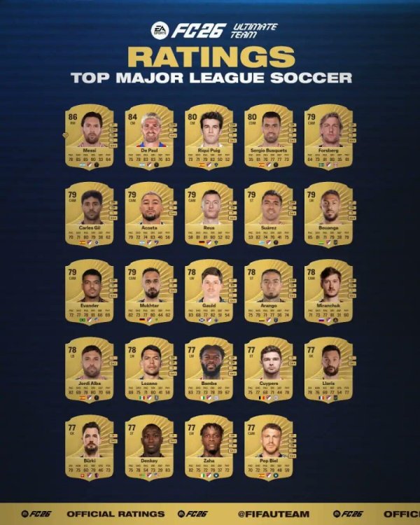 好意思职联球员FC26才能值名次:梅西86排第1,德保罗84排第2