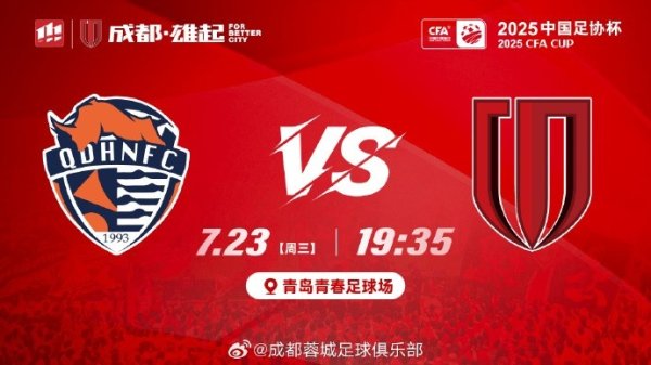 比赛日 2025中国足协杯 第5轮 ⚽ 青岛海牛 vs 成皆蓉城 📅 7月23日(星期三)19:35 🥅 青岛芳华足球场 成皆,雄起!......查看更多