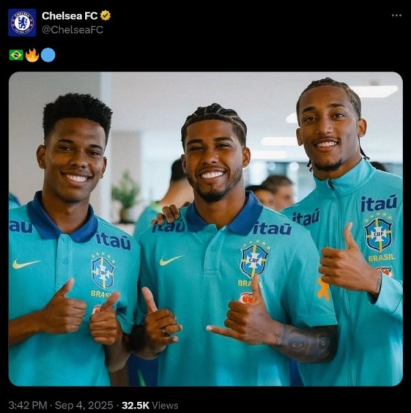 🔥🔵入选本期巴西队,切尔西社媒晒若昂-佩德罗等三东谈主合照