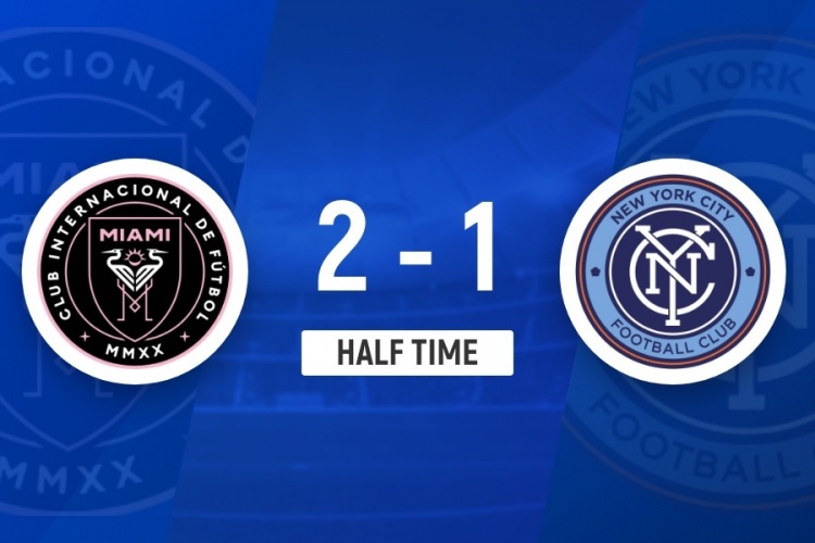 伤停补时6分钟。上半场比赛适度,迈阿密外洋2-1纽约城。