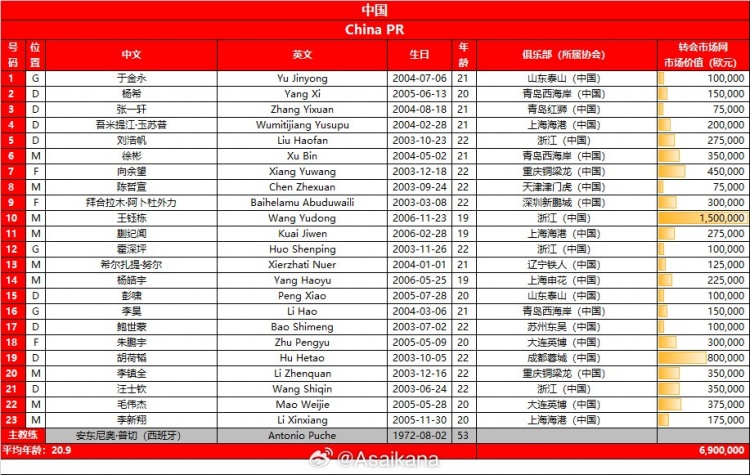 U23亚洲杯预选赛中国、澳大利亚、北马里亚纳群岛、东帝汶队23东谈主球员名单。