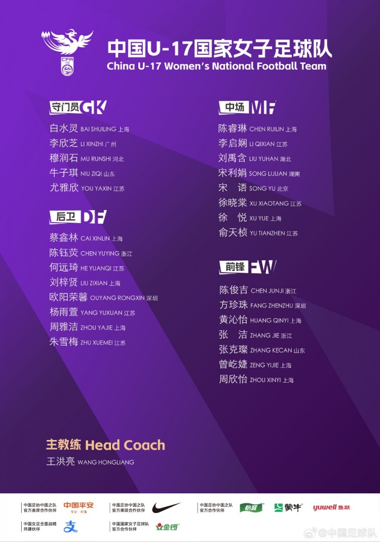 9月3日讯 中国足协官方公布了U17国度女子足球队2025年第五期集训名单,王洪亮出任主讲授,朱挺、姜宁为查考员,共28名球员入选