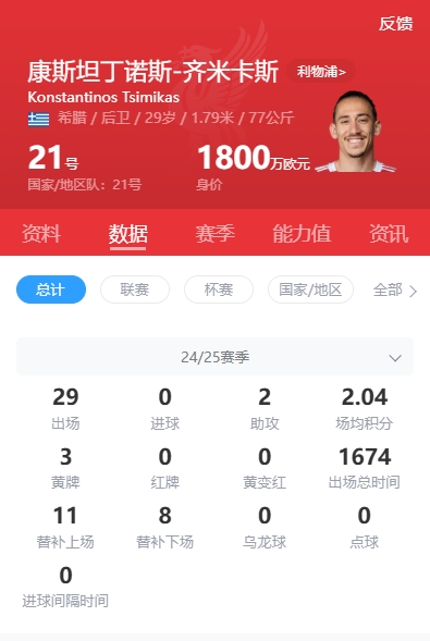 王人米卡斯现年29岁,上赛季为利物浦出场29场,当今身价1800万欧元。