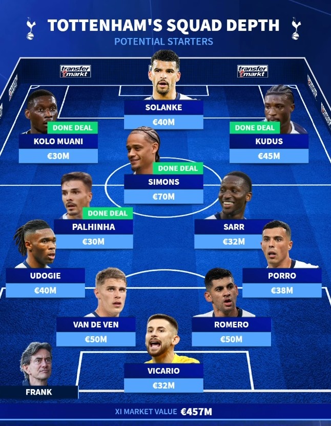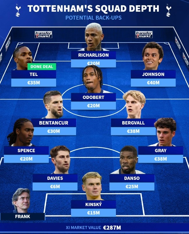 本赛季能排第几?德转列热刺两套威望:哈维-西蒙斯领衔5名新援