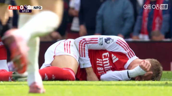 09月13日讯 英超第4轮,阿森纳vs诺丁汉丛林。比赛第8分钟,阿森纳前场狂放球,梅里诺小禁区攻门被挡,随后厄德高反抢被铲飞。慢镜头回看,厄德高几乎被我方东说念主廷伯误伤。