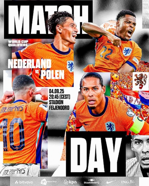 9月4日讯 北京时辰未来凌晨,荷兰将活着初赛中对阵波兰。 荷兰队官方社媒发布了为此役制作的海报,赖因德斯、邓弗里斯、德佩、范迪克出镜。......查看更多
