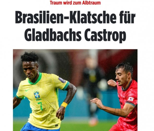 10月12日讯 本月的国外比赛窗巴西5-0横扫韩国,领有德国+韩国血缘的韩国归化中场卡斯特罗普下半时替补登场,引诱了德国媒体《图片报》的留情。 《图片报》以《好意思梦变恶梦:巴西队给门兴队的卡斯特罗普千里重一击》为题写说念:“门兴中场卡斯特罗普经历了好多孩子在街头足球或俱乐部青训时就梦念念的场景:代表国度队参加对阵巴西队的比赛! “但是,从后果来看,这场好意思梦以恶运的惊醒告终:卡斯特罗普在第45分钟替补登场,却际遇了一场0-5的惨败!但他将恒久不会健忘这个夜晚,此前他已在门......查看更多