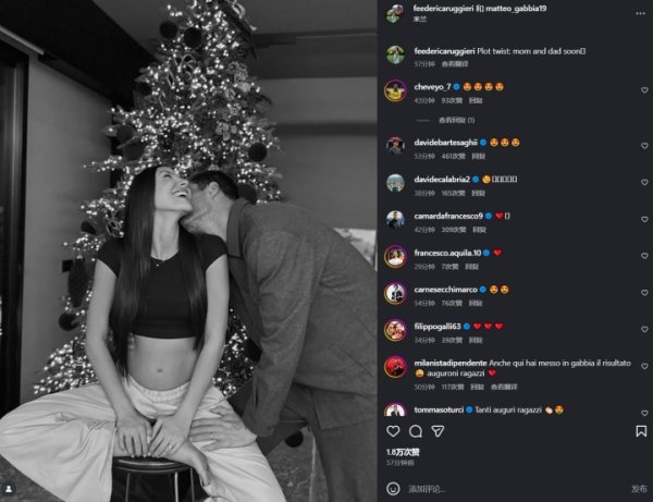 恭喜!米兰中卫加比亚社媒文告妻子怀胎,两东谈主本年6月完婚