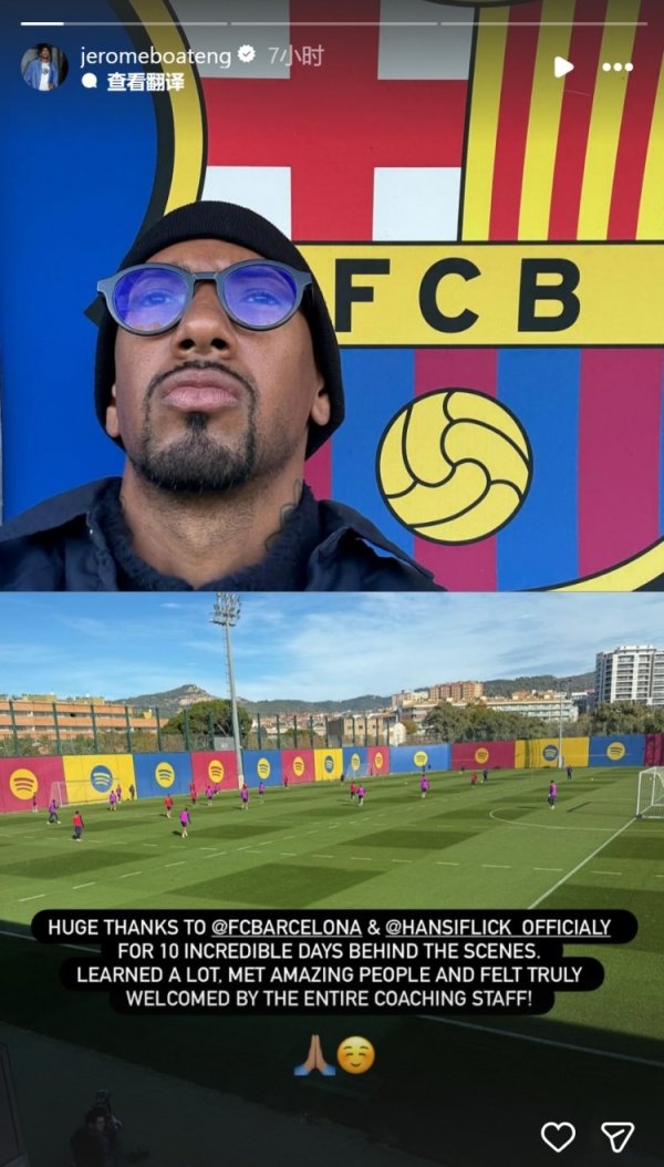 学习握教!博阿滕社媒:诚意感谢巴萨和弗里克,此行我学到了好多