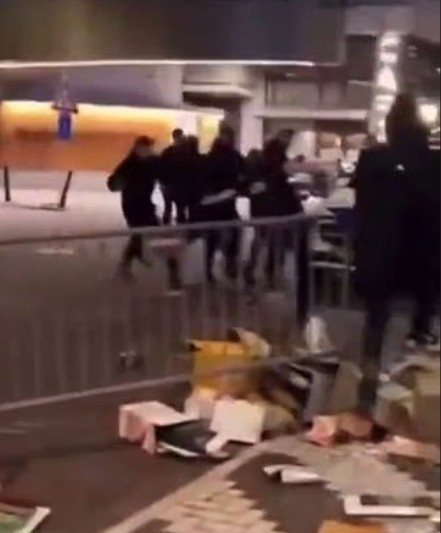 推特肤浅传的视频线路,身着黑衣的东说念主群冲进某个区域,配景中可见玻璃杯被砸碎。另一段视频中,发布者称:“我和女儿那时正在找酒吧,走到这家酒吧时嗅觉歧视垂危就没进去,随后就爆发了紧闭,这是我女儿拍摄的视频。”