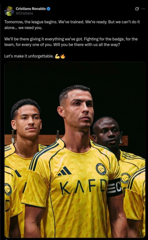 C罗社媒晒照预热:翌日新赛季联赛开启,咱们依然治装待发!