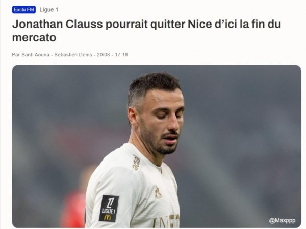 记者:乔纳森-克劳斯可能夏窗终末期间离开尼斯,有球队加速追求