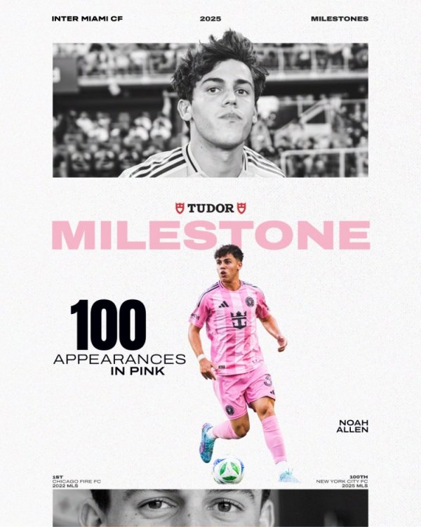 里程碑!迈阿密社媒道贺:21岁后卫艾伦迎来第100次出场 💗👏