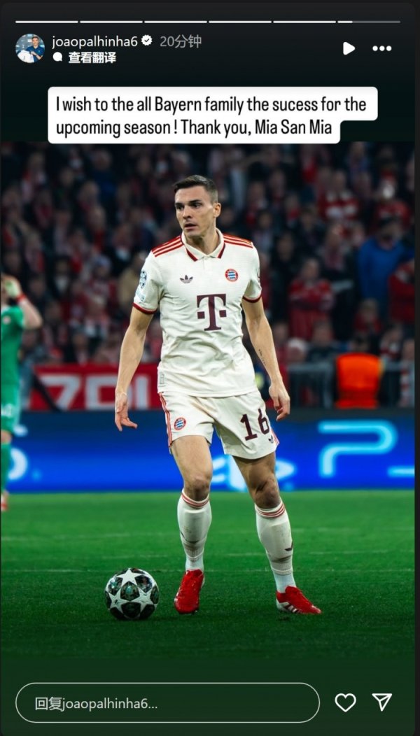 外租离队!帕利尼亚社媒:祝愿拜仁新赛季得回告捷,谢谢大众