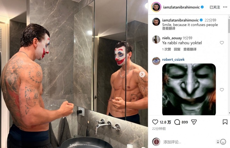 万圣节之际,伊布装束成有名邪派扮装“懦夫”,他在酬酢媒体上晒出像片,并援用台词:“笑吧,因为这会令众东说念主困惑。”