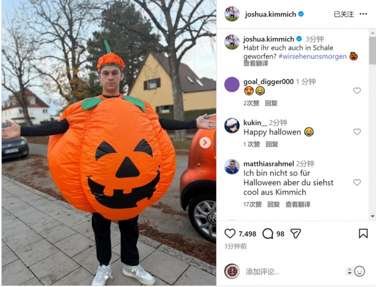 基米希装束成鬼魅南瓜,他在外交媒体上晒出像片,配文:“诸君本日也齐盛装打扮了吗?”