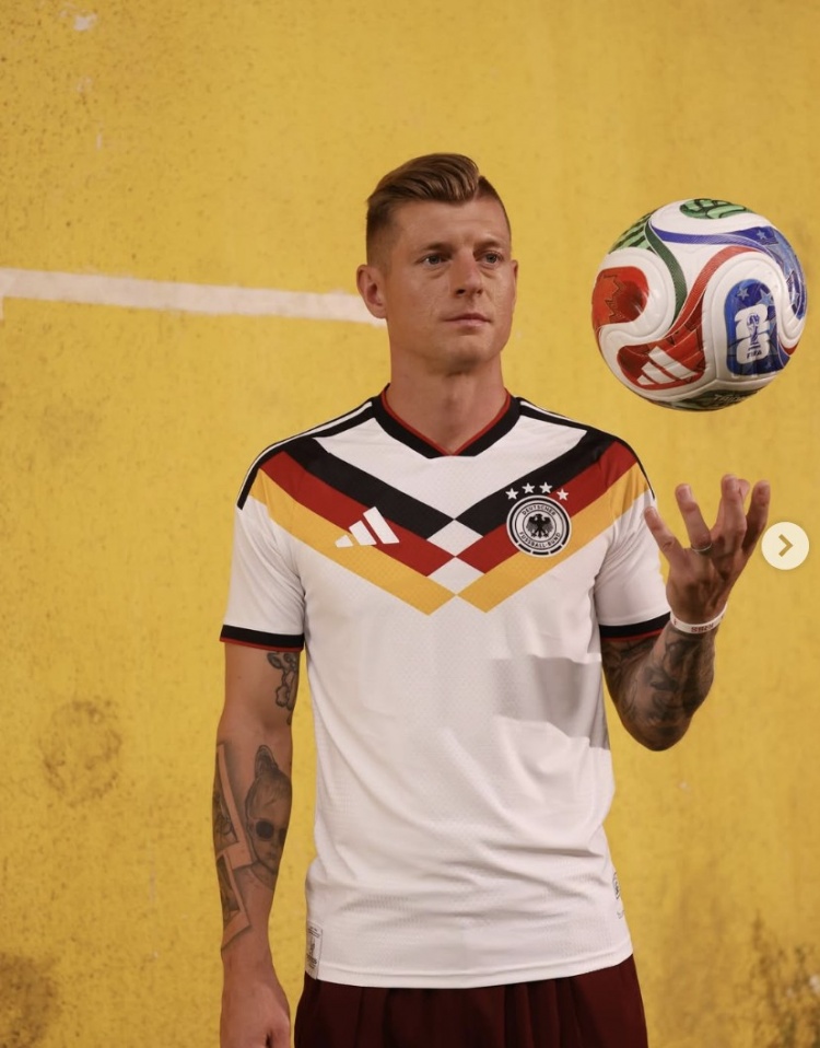 克罗斯为德国队宇宙杯版阿迪达斯战袍宣传预热,并玩笑:别惦念啦,我不会再(在赛场上)穿这件球衣了,诚然似乎看起来这球衣几乎像是在央求我穿上它。不外话说记忆,短裤也很可以。