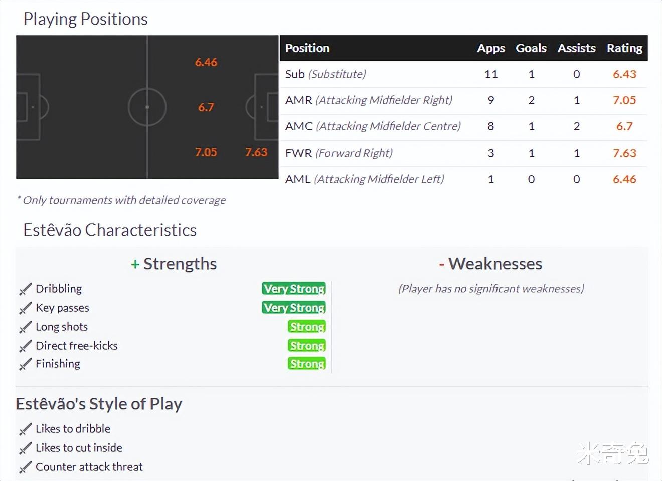 在切尔西他本赛季曾经经有4球1助攻入账,18岁的埃斯特旺天然十足速率和爆发力并不算杰出,力量和体重亦然劣势,不外他双足王人能处治球,同期球商也高,使得他不错弥补我方许多的不及。