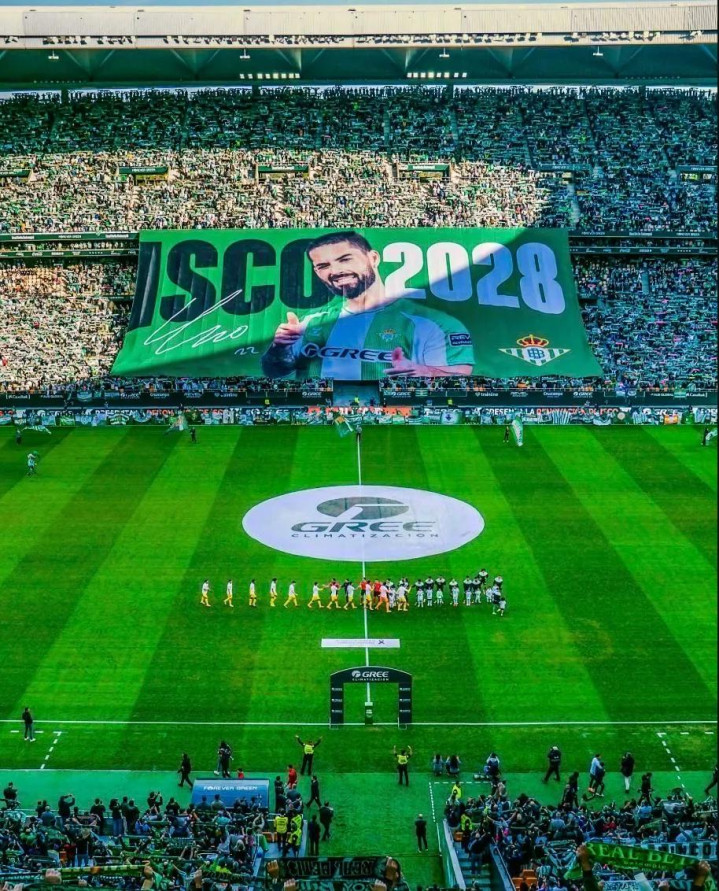 伊斯科和贝蒂斯续约到了2028年。贝蒂斯通过现场渊博横幅的样子证实了这点!
