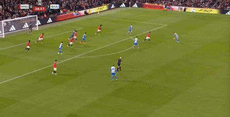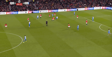 随后布莱顿更是邻接完成禁区前的横移,从弱侧仍是看到了攻门的契机: