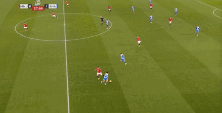 你还别不屈气,因为在第31分钟此次留神,布莱顿又用弯曲打到了曼联的左路,你看是谁在和芒特沿路留神?