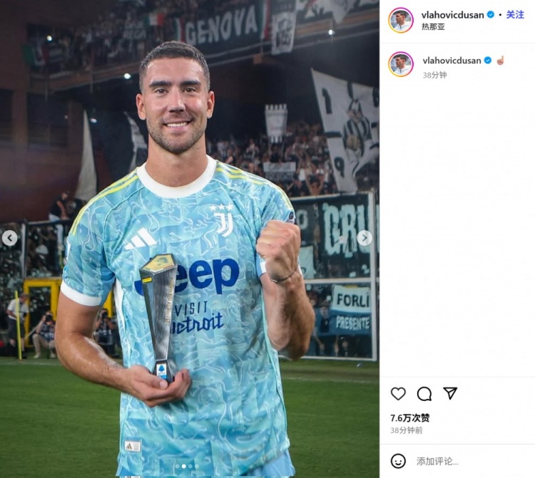 弗拉霍维奇也在赛后通过社媒晒出我方的张臂霸气庆祝照以及手捧全场最好奖杯的振臂照,他并未配上翰墨实质,但附有一个颜料象征☝🏼。