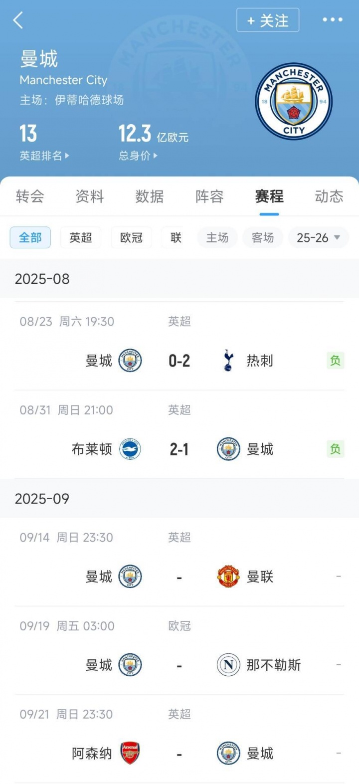 两连败、战死敌、多东谈主伤缺……周日派谁上阵对战曼联,无疑给瓜迪奥拉出了个繁难。再往后,曼城还将流畅踢那不勒斯和阿森纳,伤员们又能否实时伤愈回首救主呢?