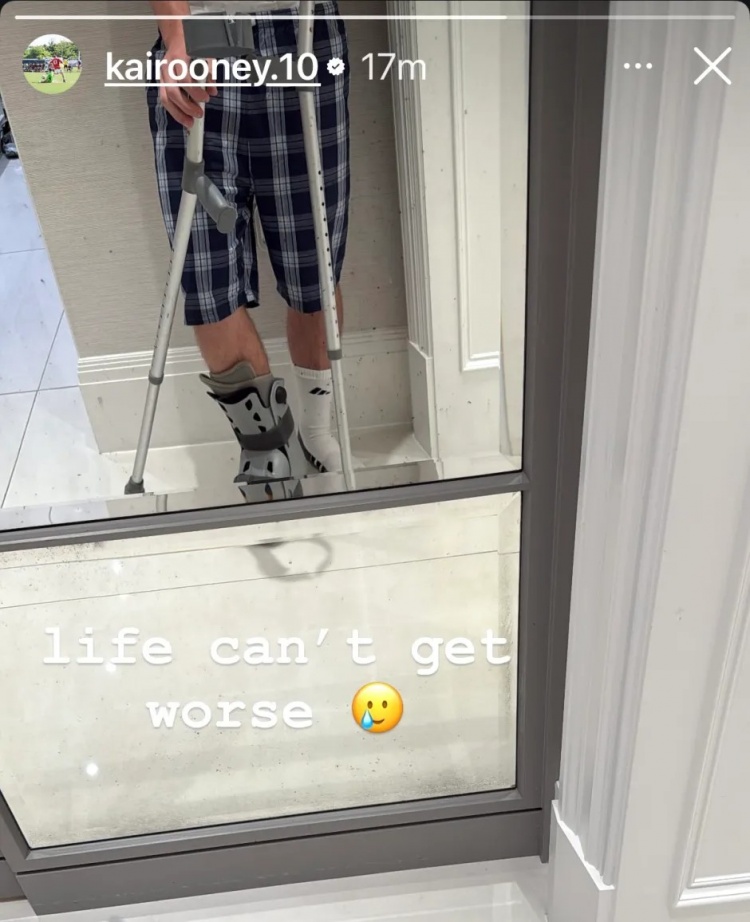 15岁小鲁尼社媒晒照拄拐:生计无法比这更倒霉了