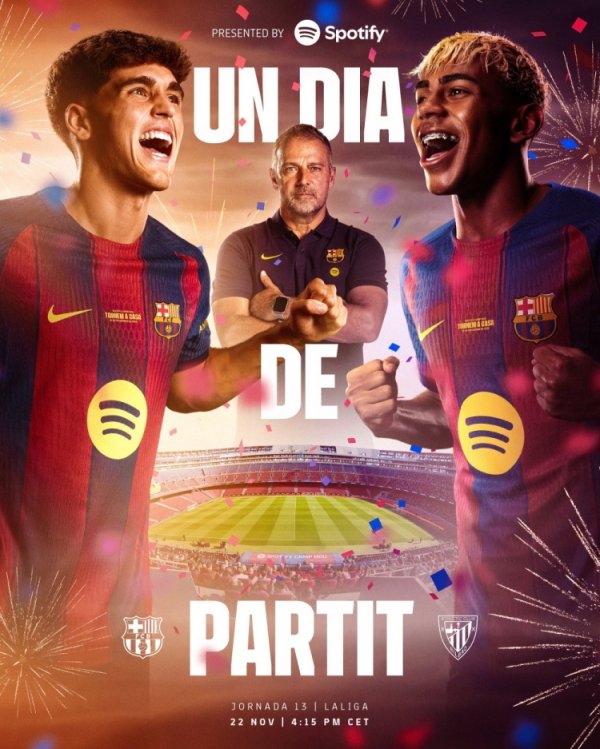 11月22日讯 北京时辰11月22日23:15,2025-26赛季西甲联赛第13轮,巴塞罗那将镇守主场迎战毕尔巴鄂竞技。 这是自诺坎普球场翻修之后,巴萨初度回到这座球场比赛。赛前,巴萨官方也晒出海报,顾忌这一期间。 库巴西、亚马尔和弗里克出镜,海报中下为诺坎普球场,下方为对阵两边队徽以及开球时辰等信息。......查看更多